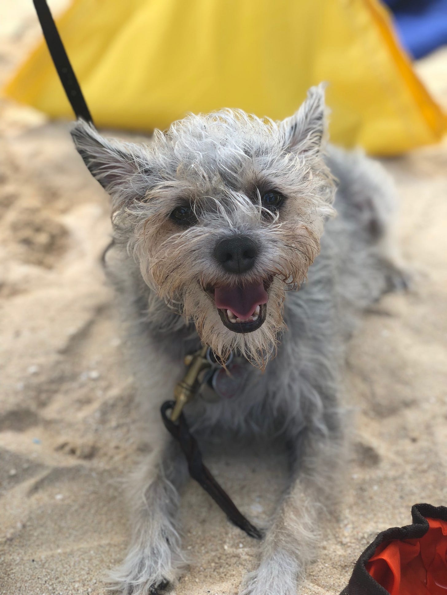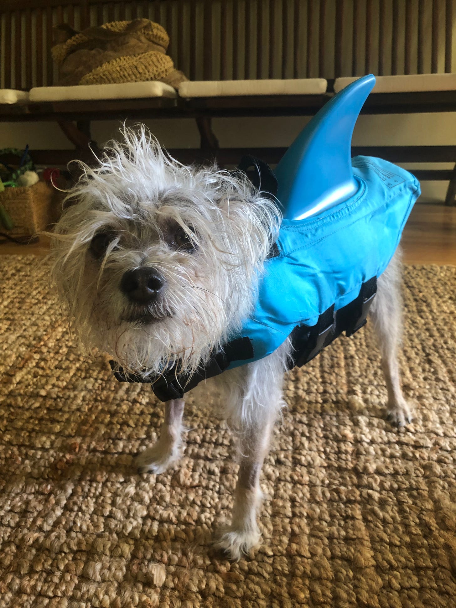 Week by week, Magnus slowly recovered his ability to walk. We were told that swimming would help rehabilitate him, so we bought him a little shark floatie. We called him shark-cutie. Turns out, he loved the beach but was not a fan of the water — he doggie paddled himself all the way back to shore.